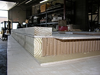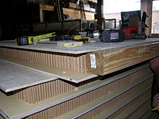 In this series of photos, you see the corner of the house being assembled. This is the most important part of the house body. As you can see, the corner is reinforced in both directions as a multi-surface connection and bond. Because each plate is integrated in each direction of the wall they become inter-dependent. Each plate is bonded with a special Gorilla adhesive and fastened for a perfect surface-to-surface bond.