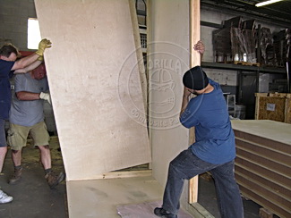 In this set of photos you see our Gorilla engineer cutting back the receiving corner wall panel.